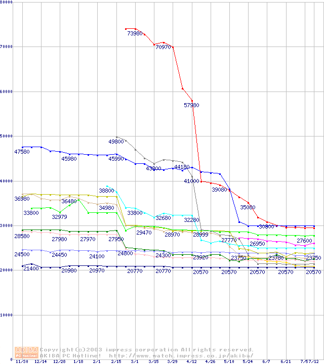 CPU主要製品(最安値2万円~3万円未満)の最安値推移