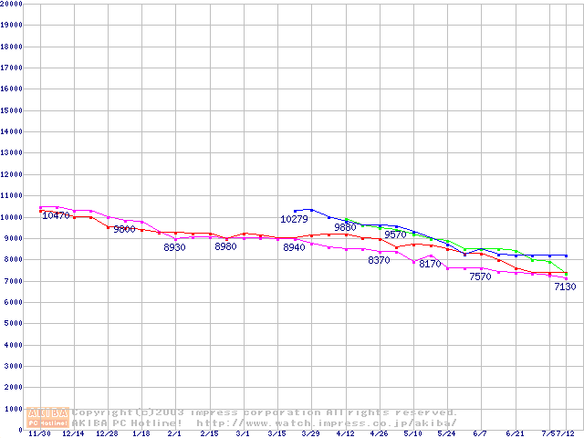 | [↓次グラフ]: | HDD 80GB~100GB未満(7200rpmクラス)の最安値推移 |
