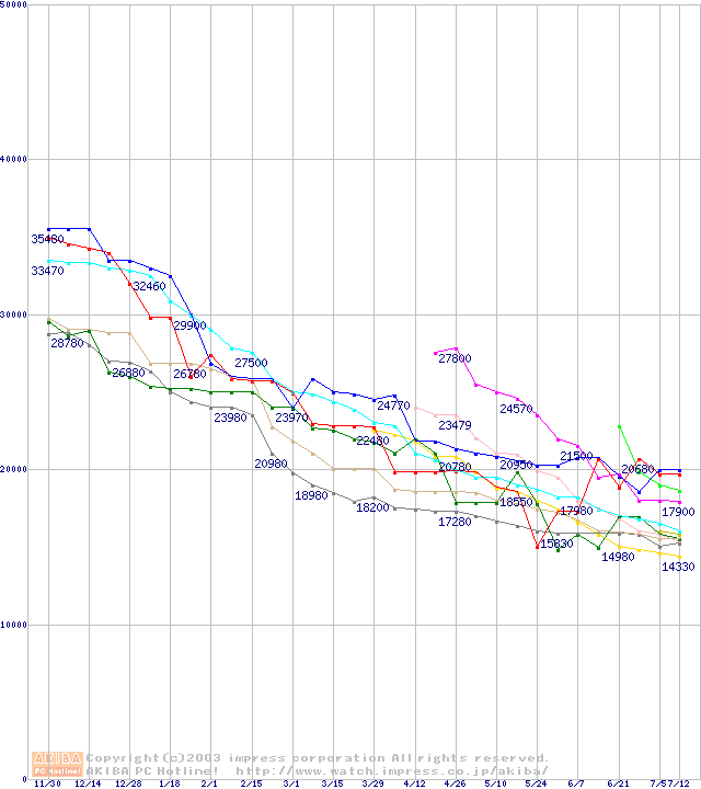 HDD 160~200GB未満(7200rpmクラス)の最安値推移