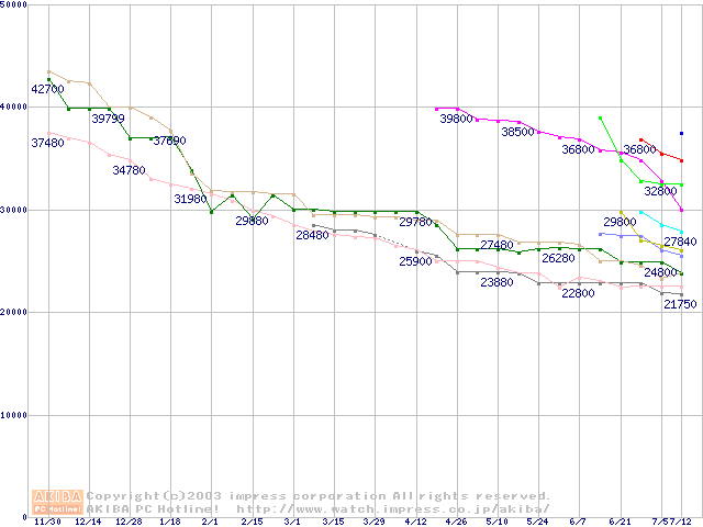メモリ主要製品の最安値推移