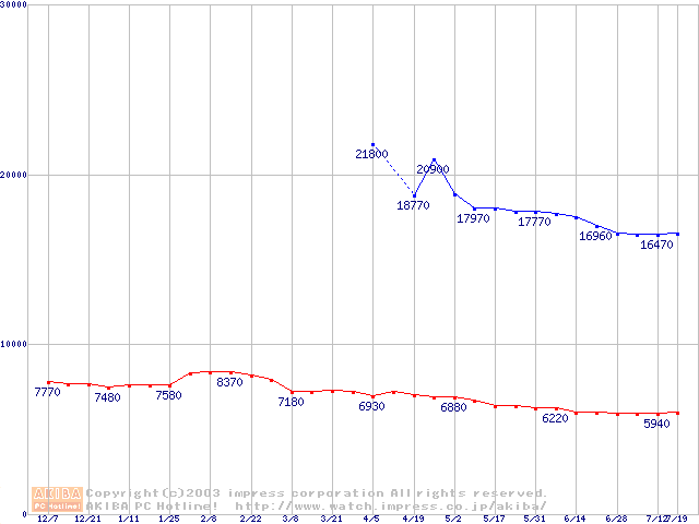 | [↑前グラフ]: | HDD 100GB以上(5400rpmクラス)の最安値推移 |