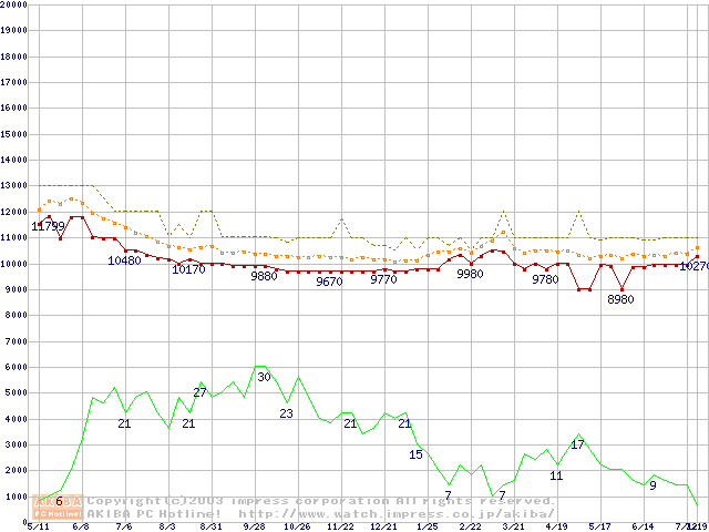 Travelstar 40GN IC25N020ATCS04 (20GB)の価格推移