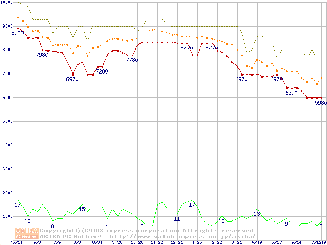 WD Protege (5400rpm,UltraATA/100)の最安値推移