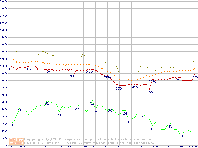PC800-40 RIMM 256MBの価格推移