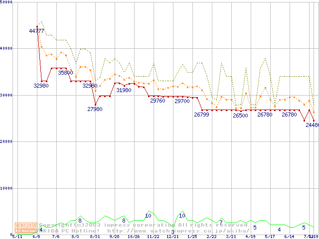 PC800-40 DRDRAM RIMM ECC対応の最安値推移