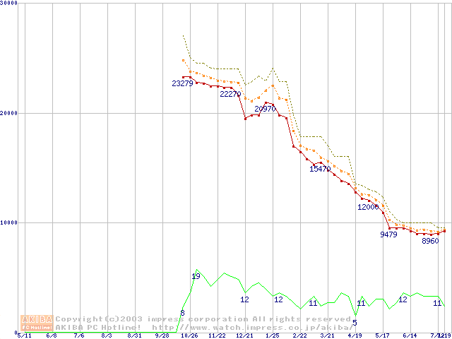 Socket A (OPGA,FSB 266MHz,L2 256KB,Thoroughbred)の最安値推移