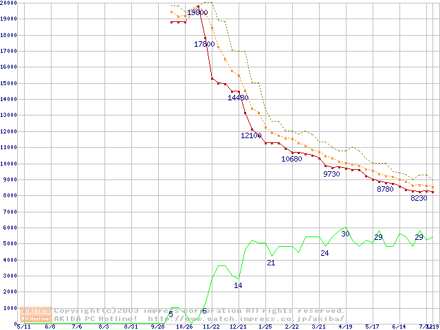 Deskstar 180GXP IC35L090AVV207-0 (80GB)の価格推移