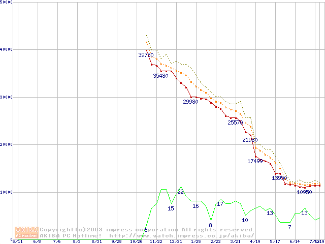 Socket A (OPGA,FSB 333MHz,L2 256KB,Thoroughbred)の最安値推移