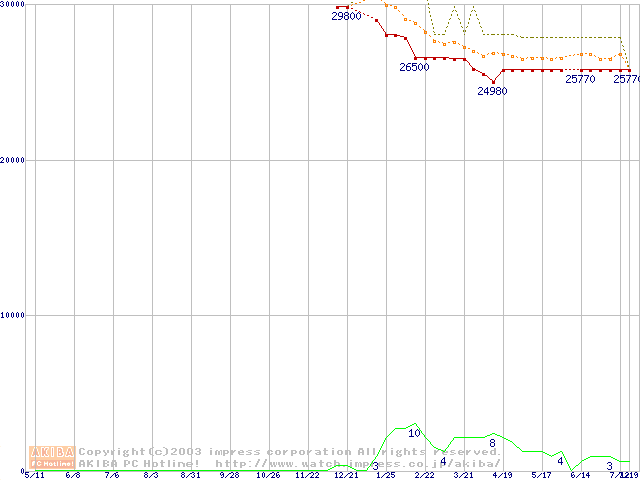 Socket 604 (micro-PGA,FSB 533MHz,L2 512KB,Prestonia)の最安値推移