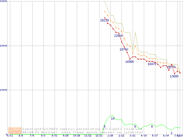 DiamondMax 16 (5400rpm,UltraATA/133,2MB,80GB/Platter,BB)の最安値推移