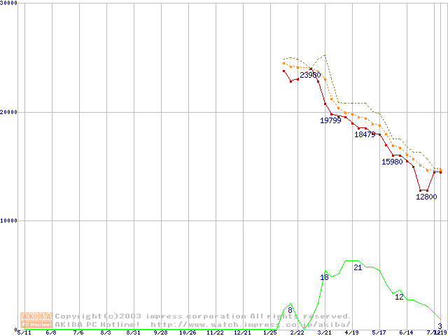 HDD 100~160GB未満(7200rpmクラス)の最安値推移