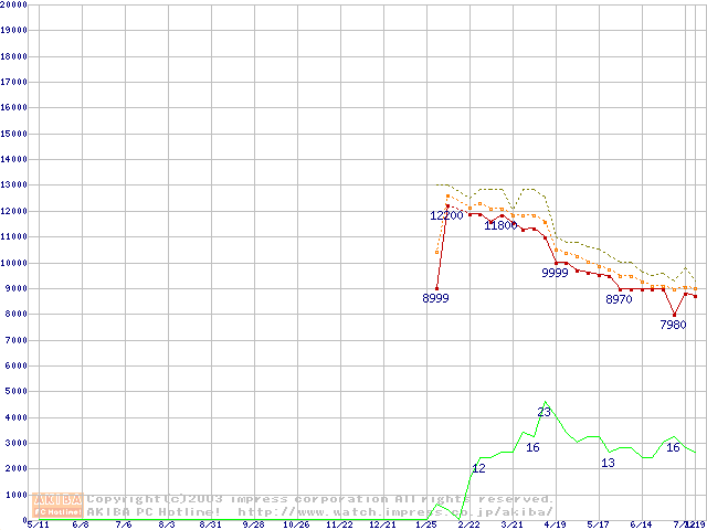 Socket A (OPGA,FSB 266MHz,L2 256KB,Thoroughbred)の最安値推移