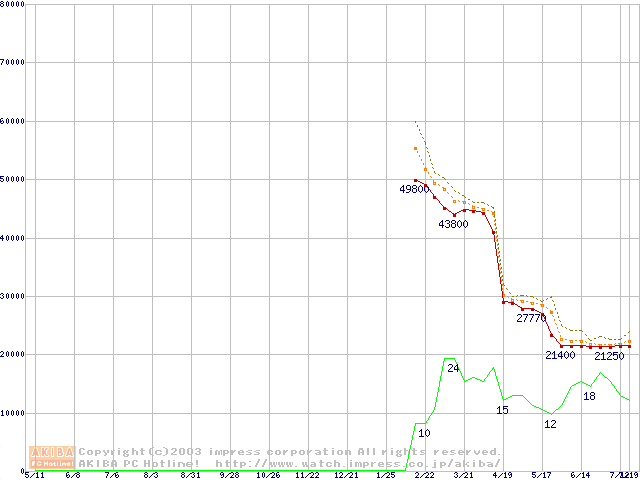 Athlon XP 2800+ (2.08GHz) リテールパッケージの価格推移