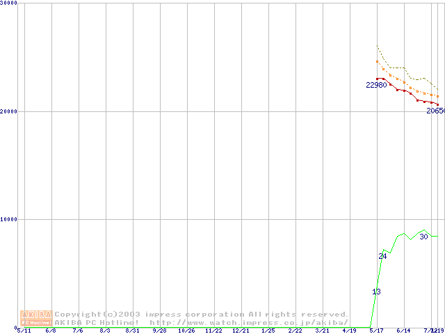 Socket 478 (micro-PGA,FSB 800MHz,L2 512KB,Hyper-Threading,Northwood)の最安値推移