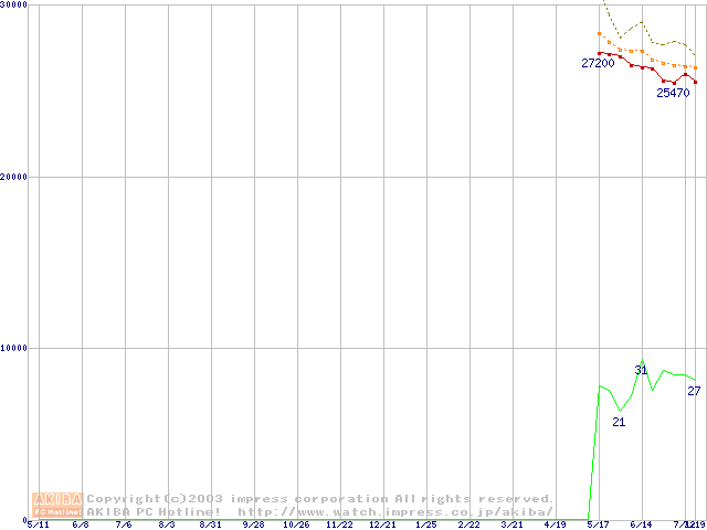 Socket 478 (micro-PGA,FSB 800MHz,L2 512KB,Hyper-Threading,Northwood)の最安値推移