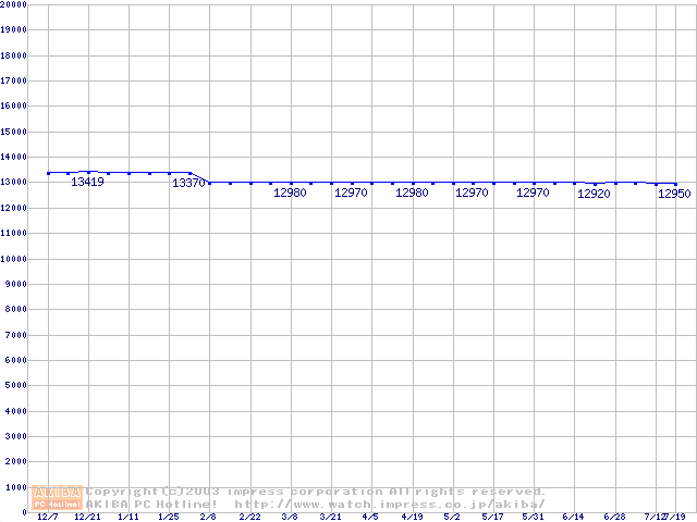 | [↑前グラフ]: | Socket 370 (FC-PGA2,FSB 133MHz,L2 512KB,Tualatin)の最安値推移 |
