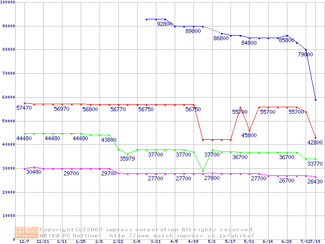 | [↑前グラフ]: | Socket 604 (micro-PGA,FSB 533MHz,L2 512KB,Prestonia)の最安値推移 |