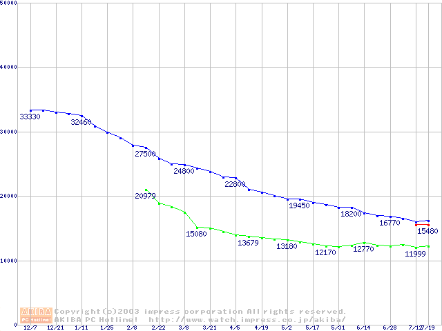 | [↓次グラフ]: | Deskstar 180GXP (7200rpm,2MB,UltraATA/100,FDB)の最安値推移 |