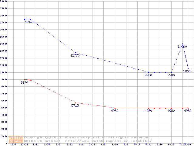 | [↓次グラフ]: | PC133 SDRAM DIMM CasLatency=3の最安値推移 |
