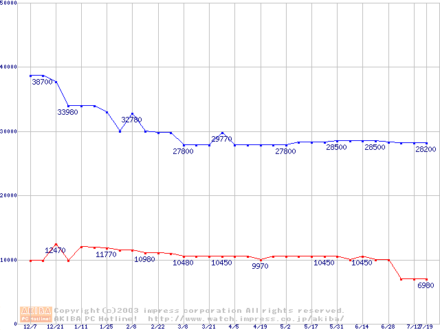 | [↓次グラフ]: | Socket 478 (micro-PGA,FSB 800MHz,L2 512KB,Hyper-Threading,Northwood)の最安値推移 |