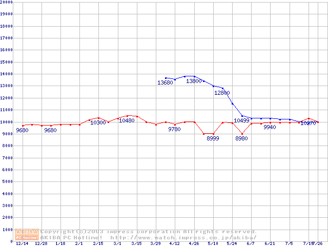 | [↑前グラフ]: | 2.5インチHDD主要製品の最安値推移 |