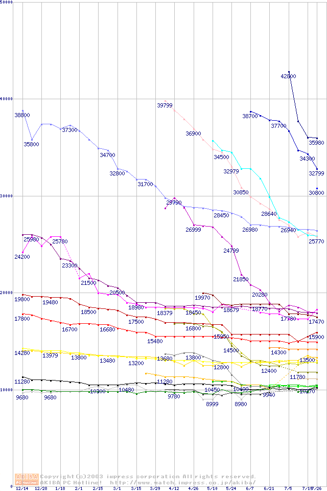 CPU主要製品の最安値推移