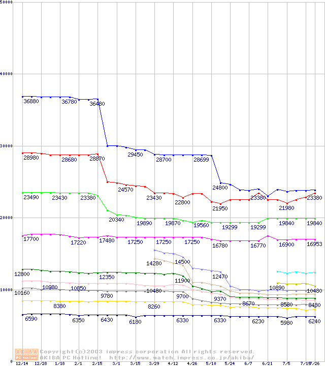 Socket 370・FSB 133MHzの最安値推移