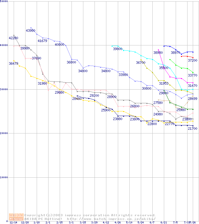 HDD主要製品の最安値推移