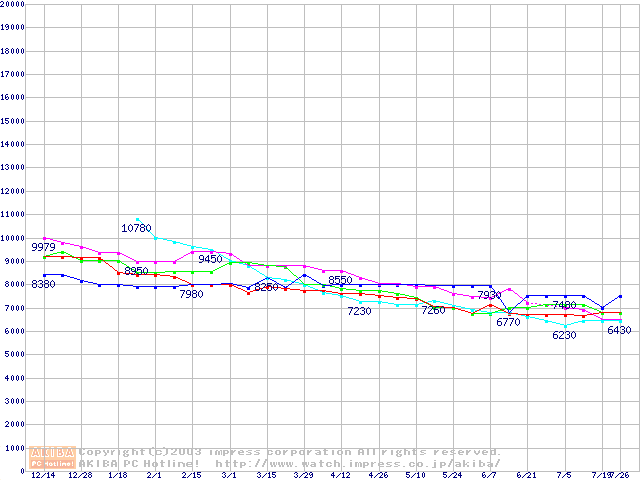| [↓次グラフ]: | HDD 60GB~80GB未満(7200rpmクラス)の最安値推移 |