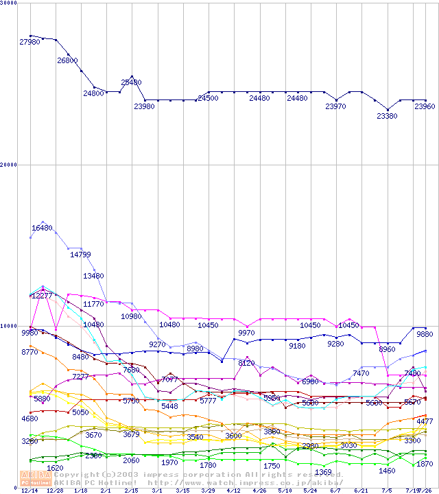 メモリ主要製品の最安値推移