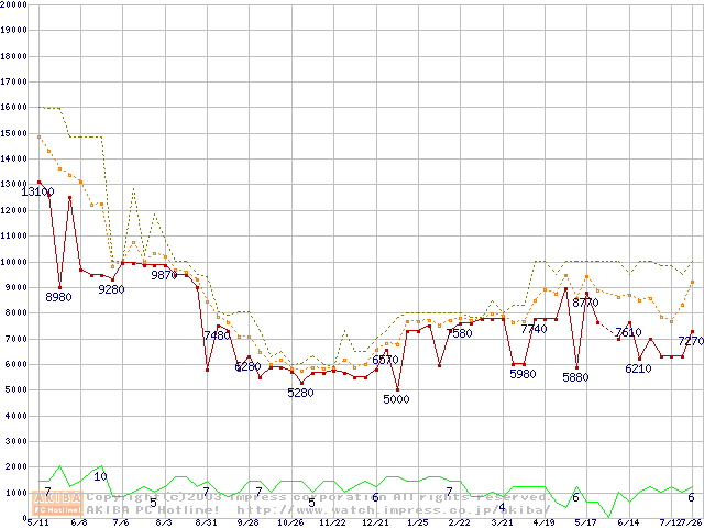 PC100 SDRAM DIMM CasLatency=2の最安値推移