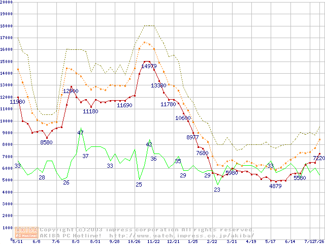 PC2100 DDR SDRAM 512MB(CL2.5)の価格推移