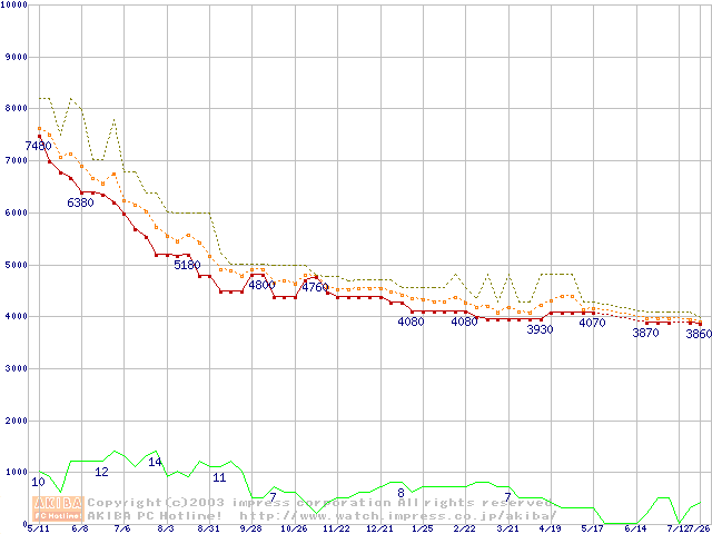 Socket A (PGA,FSB 200MHz,L2 64KB,Morgan)の最安値推移