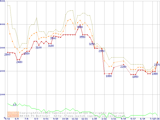 PC2100(DDR266) DDR SDRAM DIMM(CL 2.0)の最安値推移