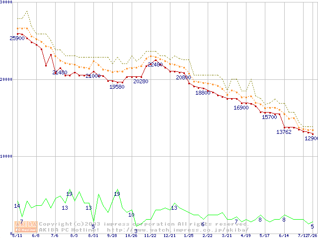WD Caviar(Special Edition) (7200rpm,UltraATA/100,8MB)の最安値推移