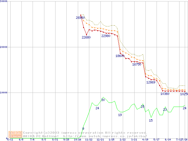 Socket A (OPGA,FSB 266MHz,L2 256KB,Thoroughbred)の最安値推移