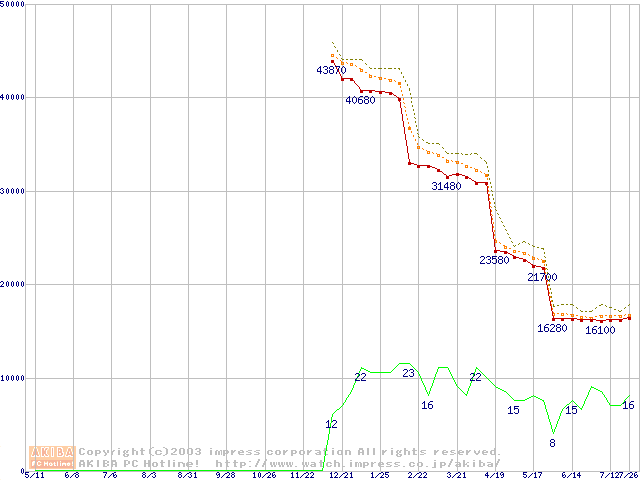 Socket A (OPGA,FSB 333MHz,L2 256KB,Thoroughbred)の最安値推移