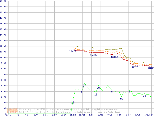 Socket 478 (micro-PGA,FSB 400MHz,L2 128KB,Northwood)の最安値推移