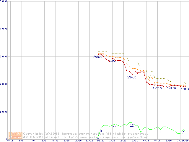 Socket A (OPGA,FSB 266MHz,L2 256KB,Thoroughbred)の最安値推移