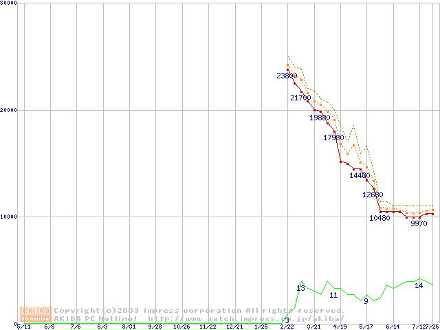 Socket A (OPGA,FSB 333MHz,L2 512KB,Barton)の最安値推移