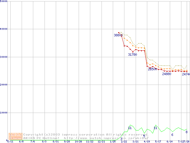 Socket A (OPGA,FSB 266MHz,L2 256KB,Thoroughbred)の最安値推移