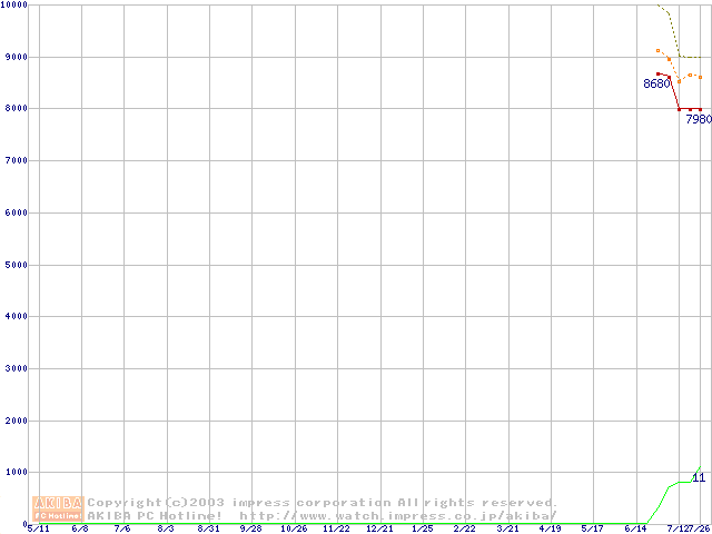 WD Caviar (7200rpm,UltraATA/133,2MB)の最安値推移