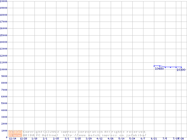 | Travelstar DK23EB (9.5mm,5400rpm,UltraATA/100,512KB)の最安値推移 |