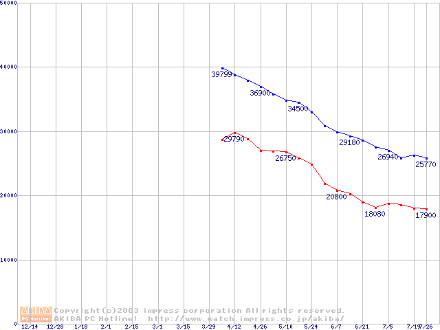 | [↑前グラフ]: | Travelstar DK23EB (9.5mm,5400rpm,UltraATA/100,512KB)の最安値推移 |