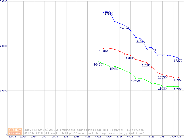 | [↑前グラフ]: | Fireball 3 (5400rpm,UltraATA/133,2MB,FDB)の最安値推移 |