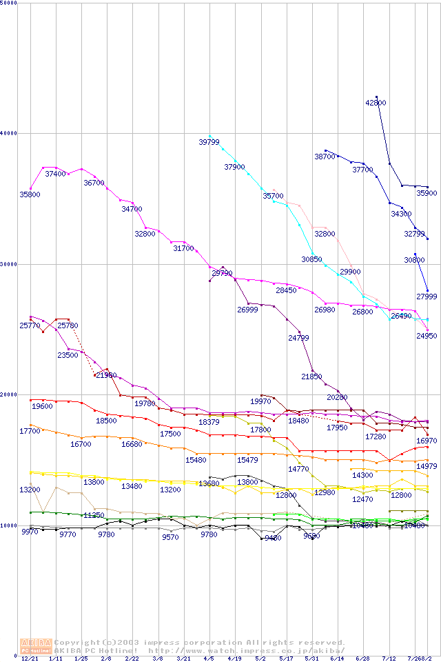 2.5インチHDD主要製品の最安値推移