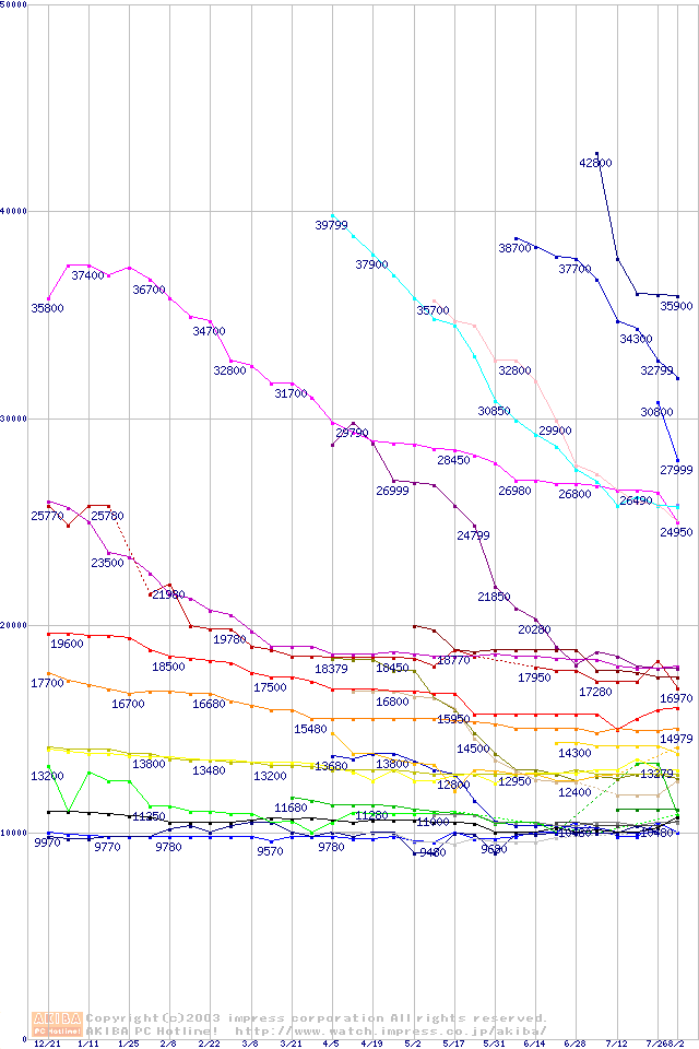 2.5インチHDD 80GB以上(9.5mm厚)の最安値推移
