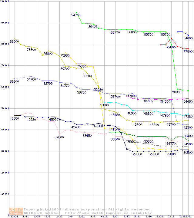 Socket A・FSB 266MHzの最安値推移