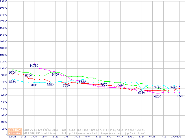 | [↓次グラフ]: | HDD 60GB~80GB未満(7200rpmクラス)の最安値推移 |