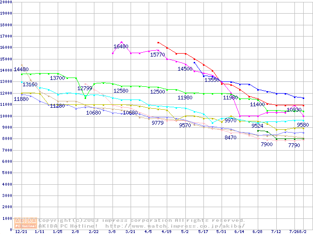 HDD 100~160GB未満(7200rpmクラス)の最安値推移